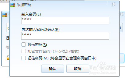 点击下方的“添加密码”按钮,在弹出的对话框中持续输入两次不异的密码,确认后即可建立带有密码的压缩包