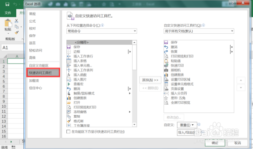 在所有号令下选择按行朗读单位格并添加至自界说快速拜候东西栏。