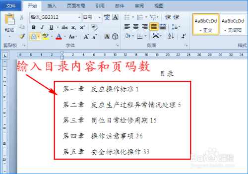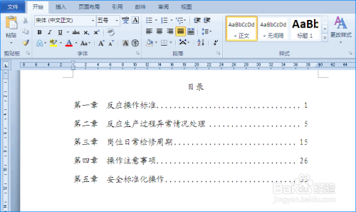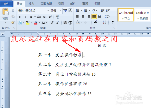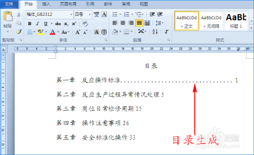 返回到文档时,我们先将鼠标定位在目次内容与页码数之间,然后点击键盘上的”Tab“键,如许目次就生当作了。如图所示: