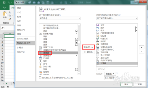 在所有号令下选择计较器并添加至自界说快速拜候东西栏。