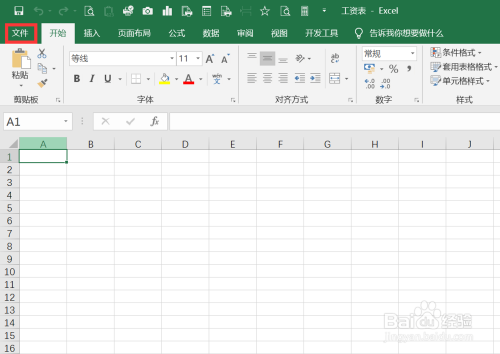 打开一个空白excel表格并点击左上角的文件。
