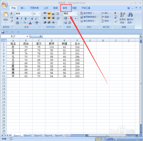 找到菜单栏中的“核阅”单击