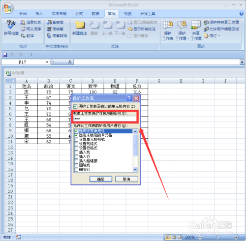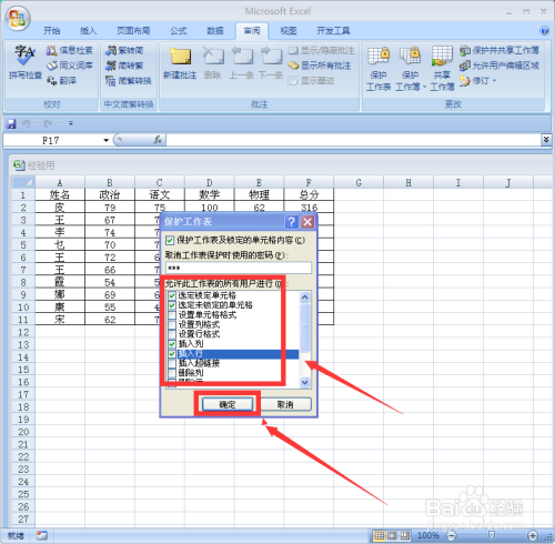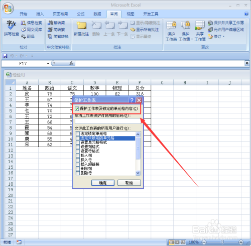 在“许可此工作表的所有效户进行”下面选择合适的不受庇护的操作,好比“选定”项、“掺入项”等,选择完当作单击“确定”