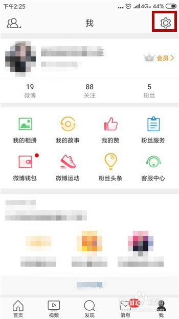 在微博的小我本家儿页中找到右上角的【设置】选项,点击打开设置功能。