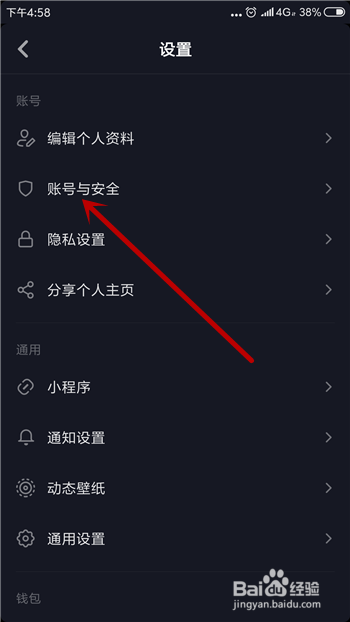 然后在设置里面点击【账户与平安】。