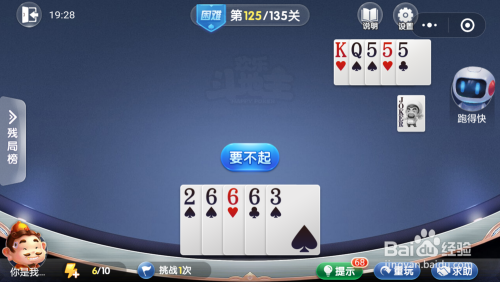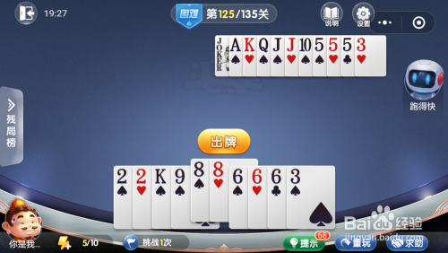 第125关先打出一对8,跑得快打出一对J。