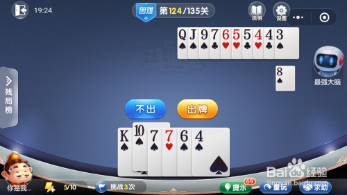第124关先打出一张5,最壮大脑打出一张8。