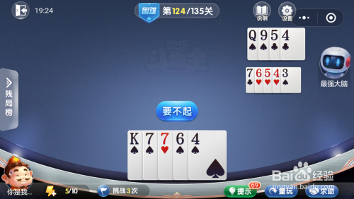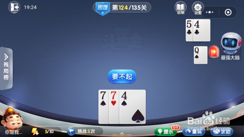 最壮大脑打出一张Q,接着打出一张4,我打出一张7,接着打出一张7一张4就过关了。