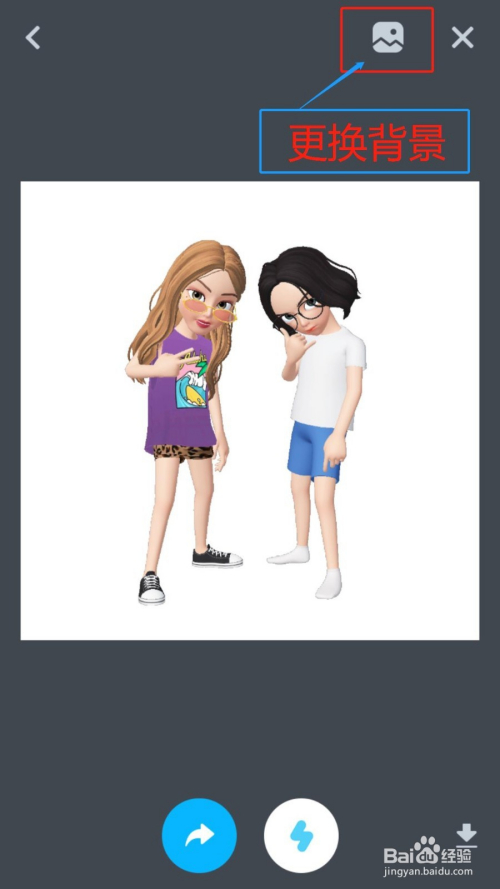 点击右上角的换布景按钮,可以将合照的布景换当作你手机相册里的布景。