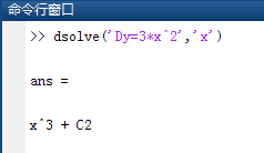 dsolve(‘Dy=3*x*x’,‘y(0)=2’,‘x’)。可以看到谜底中的常数项