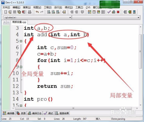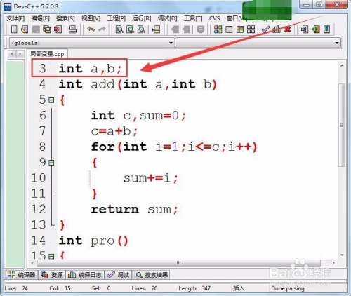首先,界说两个全局变量a和b。
