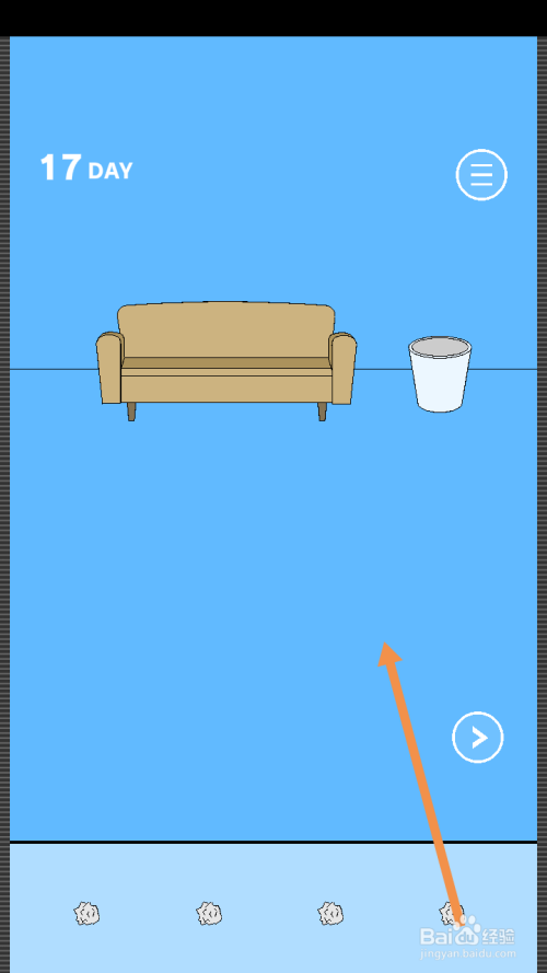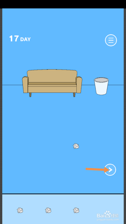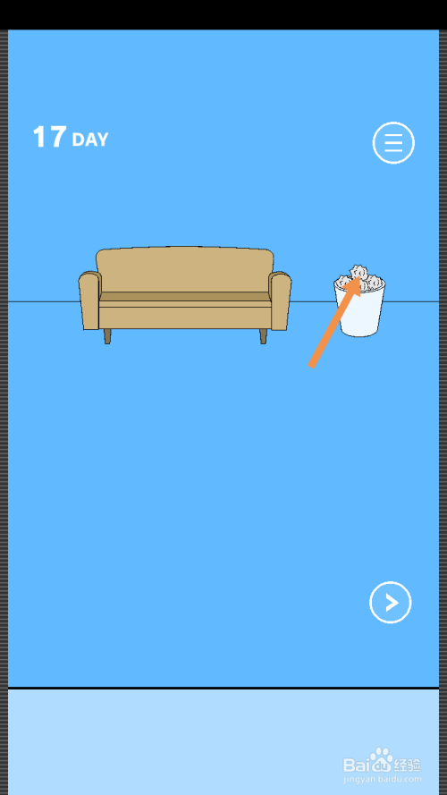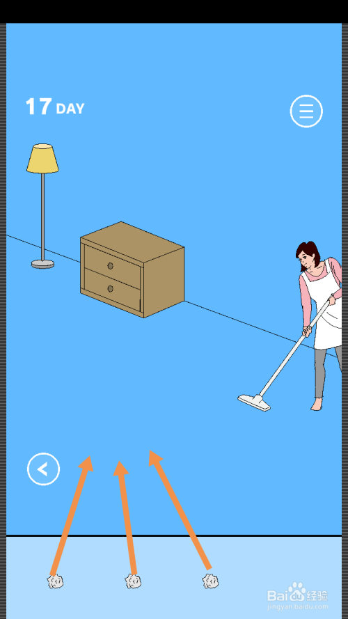 第17关点击桶里的四团纸,然后将一团纸拖动到地上。