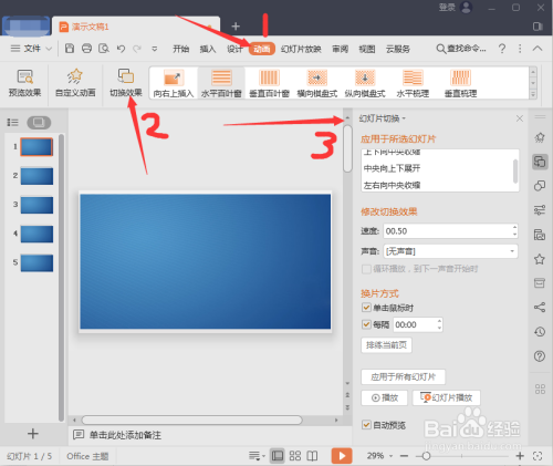 接下来就是对全数幻灯片进行一一设置切换时候: