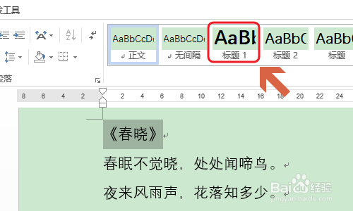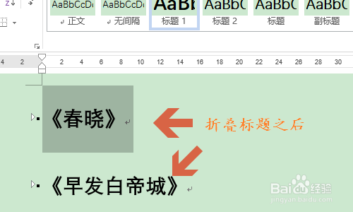 接着点击“起头”-“样式”,在样式中将这些题目设置为“题目1”,图二就是设置今后的结果图;