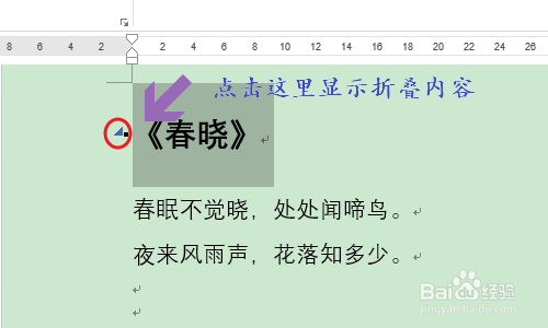 我们以下面的两首唐诗为例,从下图可以看出这两首诗既有题目,也有正文内容,若是我们想要将正文折叠起来,应该怎么办?