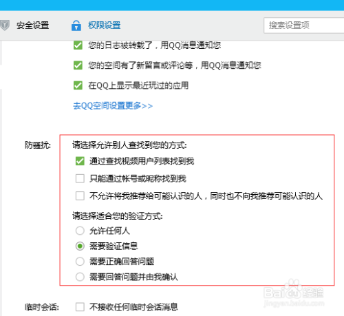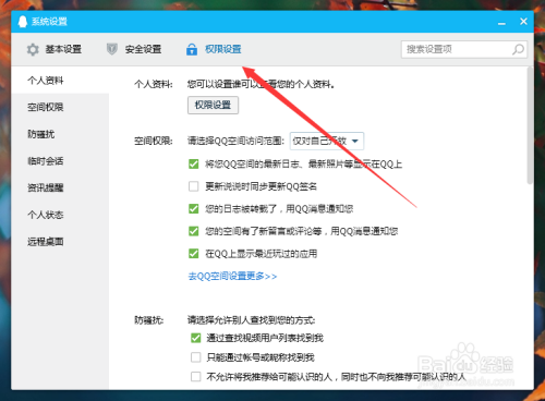 我们可以看到“权限设置”下的“防骚扰”选项,可以按本身的现实需要进行设置了。设置完毕后就会生效了,如许大师就能免受骚扰了。