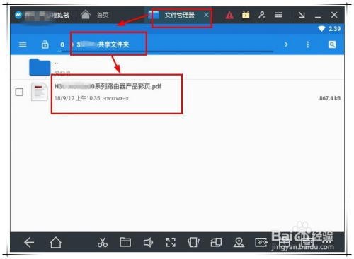 把pdf文件导入模拟器第二步:然后在模拟器界面的底部,找到并点击如图所示的一个“文件夹”图标,打开“共享文件夹”。