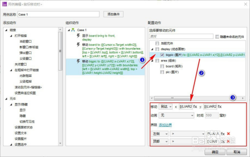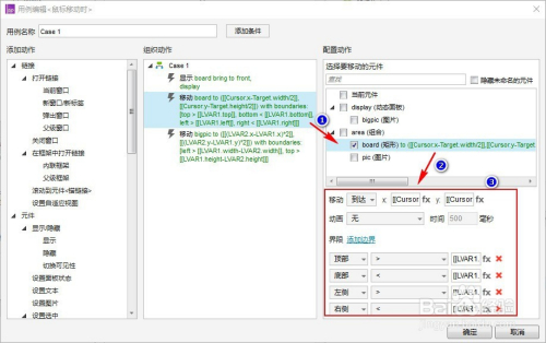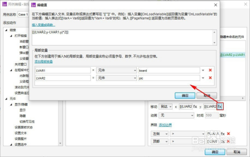 设置“动态面板:board”为局部变量LVAR1,“图片:pic”为局部变量LVAR2;