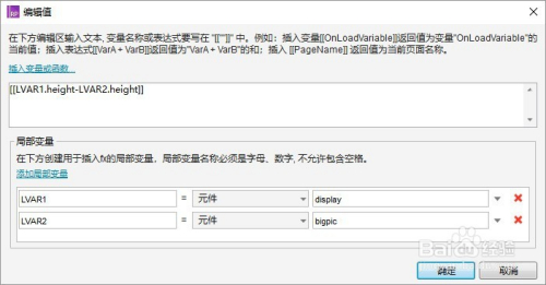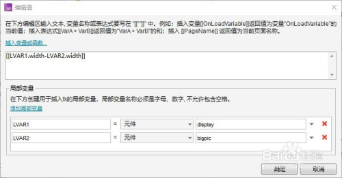 设置“动态面板:display”为局部变量LVAR1,“图片:bigpic”为局部变量LVAR2;