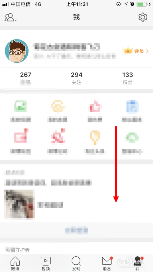 首先在手机上打开并登录新浪微博App,并在首页面点击右下角的 我 。
