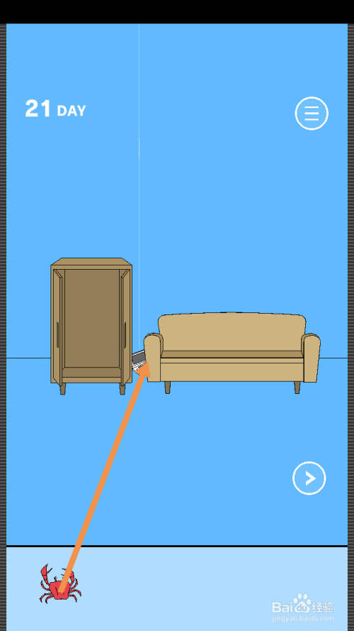 获得螃蟹后,点击标的目的左箭头,进入左边的房间。