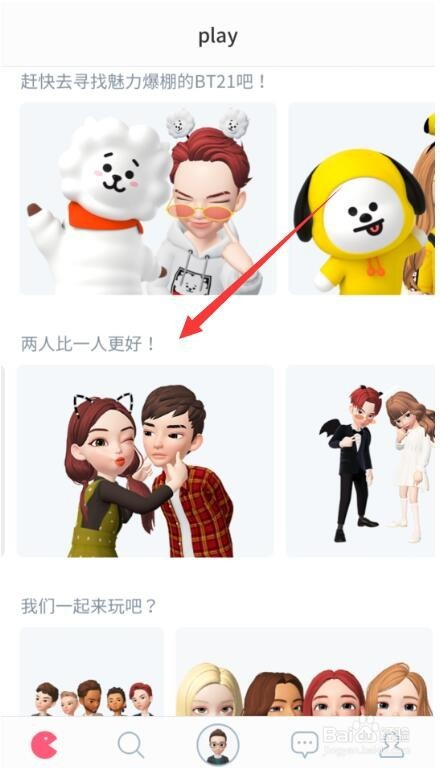 在首页中往下拉,然后找到两人比一人更好,点击里面的造型图片