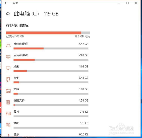 可以计较出C哦按的利用环境,这里系统和保留是系统文件,不成以动,其他的都可以处置,如其他,点击其它