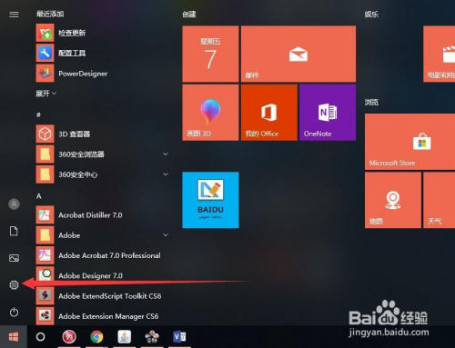 首先找到电脑的左边起头中的设置按钮,如图所示的齿轮图标,点击该图标