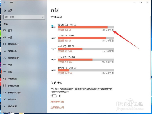 在系统本家儿页导航中可以看到存储选项,鼠标移动点击该选项进行存储办理