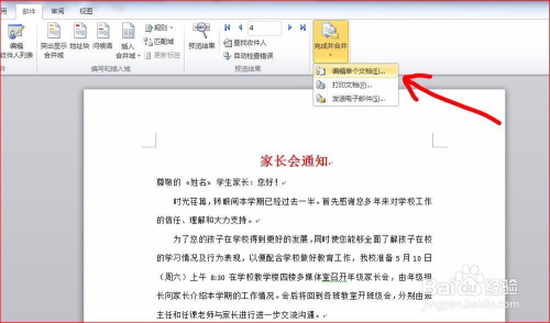 点击“完当作并归并”,鄙人拉列表中选择“编纂单个文档”。