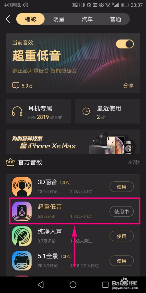 点击利用按钮今后,超重低音的状况酿成【利用中】,申明其结果已经被开启了,然后回到本家儿页面播放音乐就可以了。