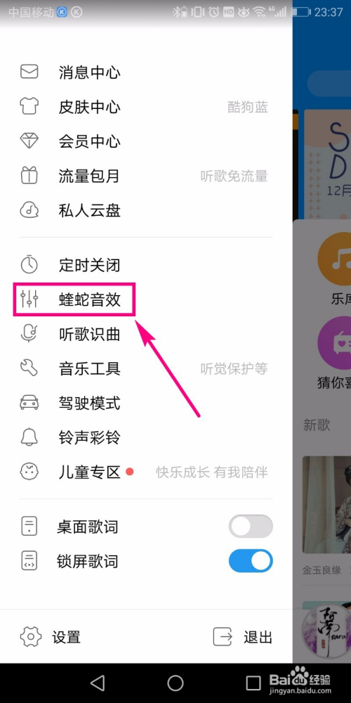 然后咱们就能看见一个埋没菜单被睁开,在睁开的埋没菜单中点击选择【蝰蛇音效】。