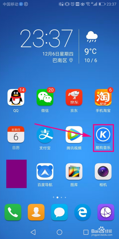 打开手机,找到酷狗音乐app的图标,点击该图标进入到软件首页。