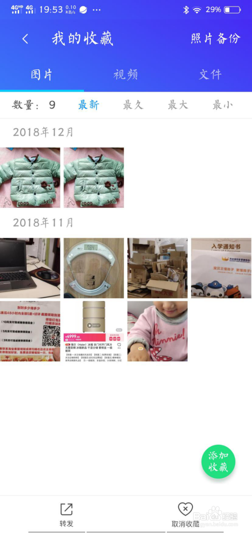 同时,微信清算还新增“我的保藏”功能,对于任何想保留的照片,都可以插手保藏,避免文件丢掉。插手“我的保藏”后,可以转发和打消保藏。