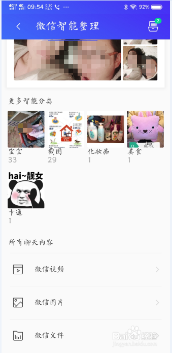 进入后,就会看到,微信智能清算功能,已经主动将微信视频、微信图片、微信文件按照分歧类别精准分类,并生当作智能化标签。