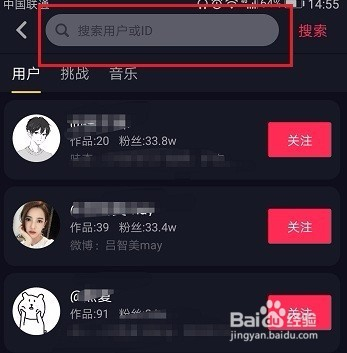 步调3:进入到搜刮查找的页面今后,我们就可以经由过程输入用户名或者抖 音id来进行搜刮了。