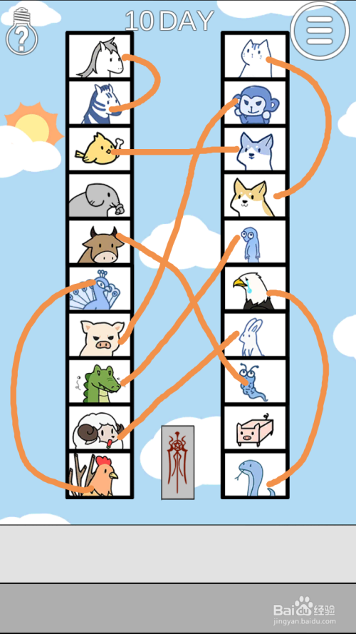 第10关按照下图中动物的连线将它们驱除。