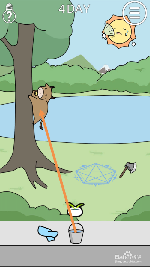 获得领巾后,将水桶拖动到水面上,然后把装满水的桶拖动到牛身上。