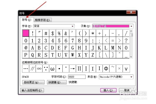 呈现“符号”对话框。选择“符号”选项卡。