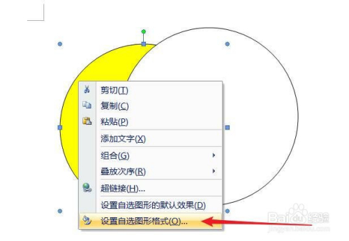 在任一一个圆上右击鼠标,在弹出菜单中点击选择“设置自选图形格局”。