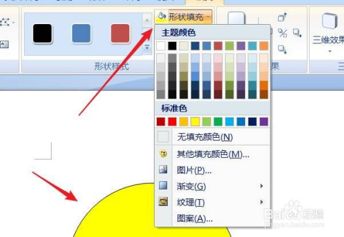按住键盘上的shift键拖动鼠标画出一个圆形,然后点击上方的“外形填充”,把圆填充当作黄色或者其他本身喜好的颜色。
