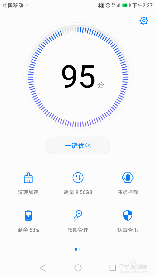 打开软件之后,我们可以看到一键优化这项,然后点击优化,清理加快,点击完当作。