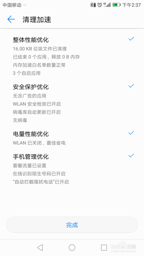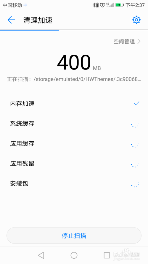 可以看到我们本次清理了几多垃圾,这个页面的下面有空间办理这项,点击进去,可以看到手机内存也用了多年夜,里面的选项没有效的,或者缓存的,我们要进行清理。好比不消的音乐,图片,视频,应用数据等。