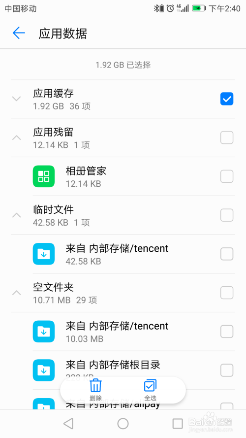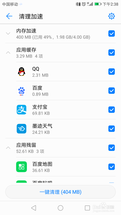 - 对应用数据清理时,对主要的软件可以选择性处置