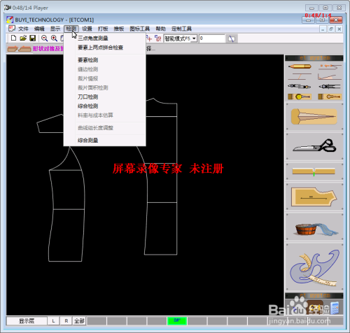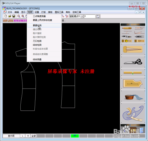 在ET打版制图中,完当作外形对接及复制功能后,还有主要一步,对接后的检测。