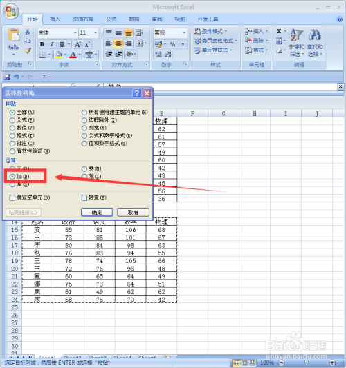 在选择性粘贴功能菜单中的运算中勾选“加”
