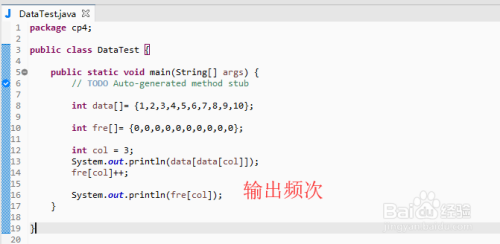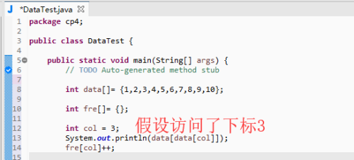 先假定一个我们要拜候的下标,只要拜候一次该数据,这里是以打印为例,然后就把对应下标中的频次加1