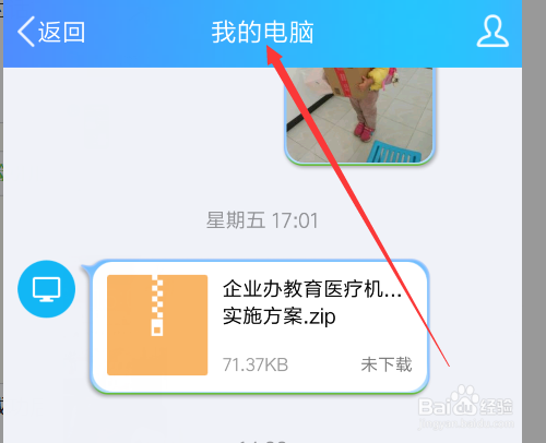 文件发送当作功后,在手机上登岸QQ,在“我的电脑”上查看收到文件信息。
