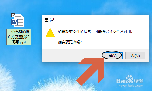 找到适才另存为的文件,点击鼠标右键选择“重定名”,然后将文档后缀更改为“.ppt”,如图所示...