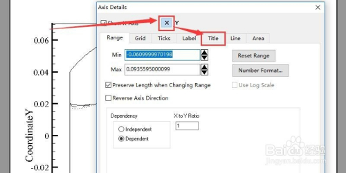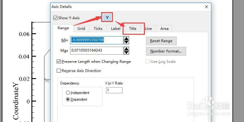 同样,我们点击Y轴按钮,然后再点击子菜单的Title按钮,如图所示。